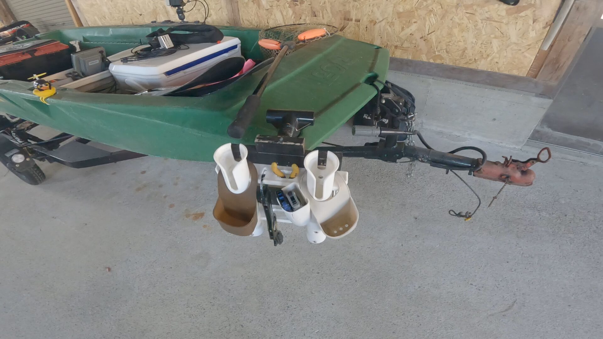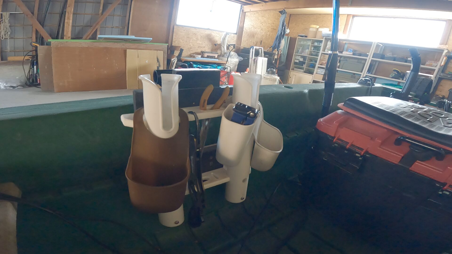 釣りが終わって家に帰ったら、船首の部分に挿せば水切りも出来ます。この状態のまま釣り具と一緒に水をかけて洗えるので、片付けもめちゃくちゃ楽。