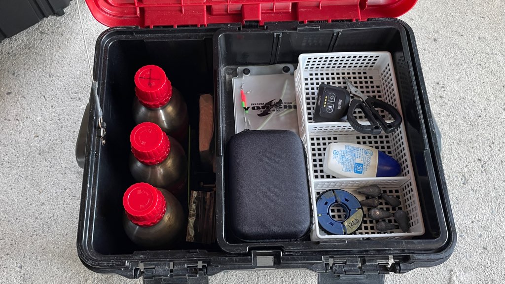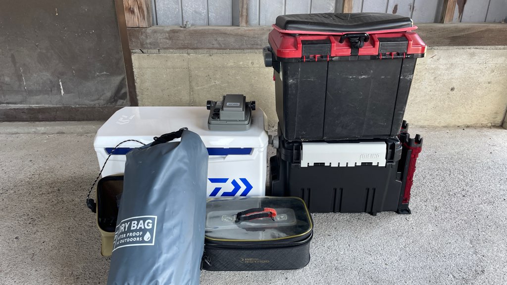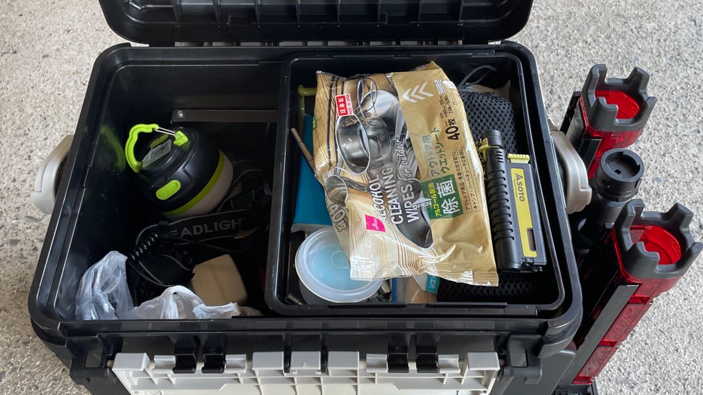 ドカット4700にキャンプ用品を入れておけばキャンプの時に取り出しやすくなるんだけど、釣り⇔釣りキャンプのたびに荷物の入れ替えの手間が発生するジレンマ。