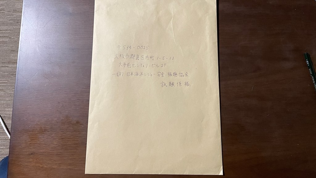 日本海洋レジャー安全・振興協会【小型船舶操縦士機関】(以下、JMRA)の近畿事務所から申請書類一式が届きました。