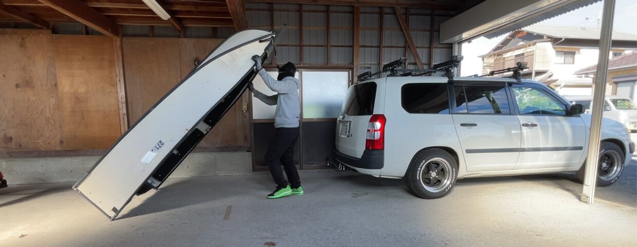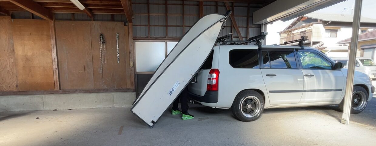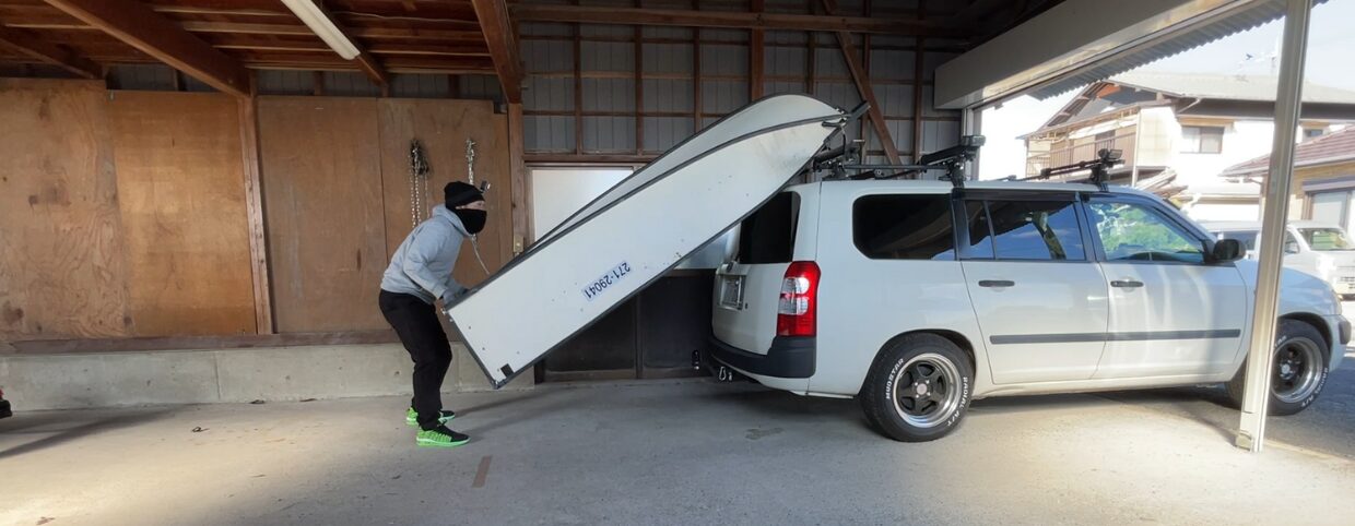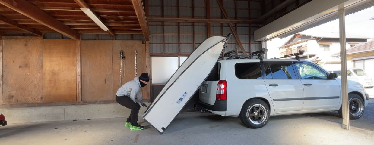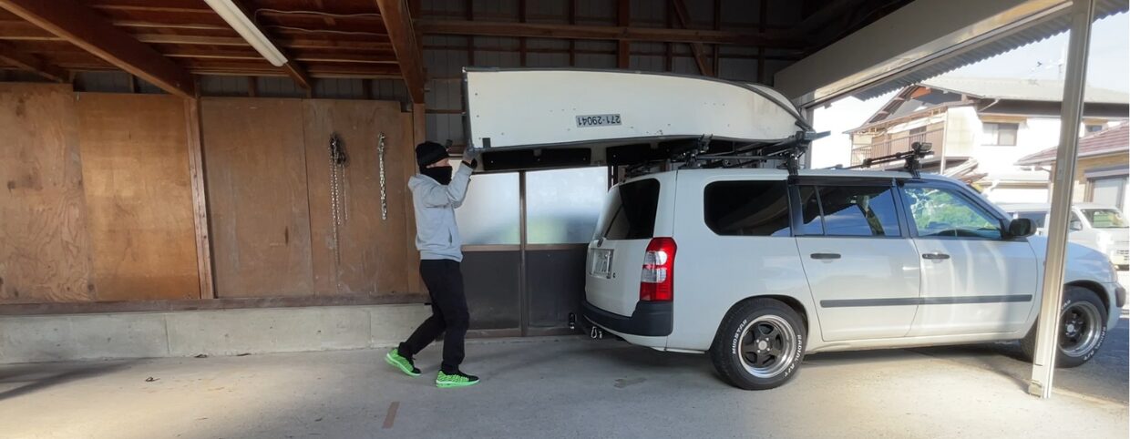 この記事では、ポータボート8ftを広げたままカートップする方法を紹介します!