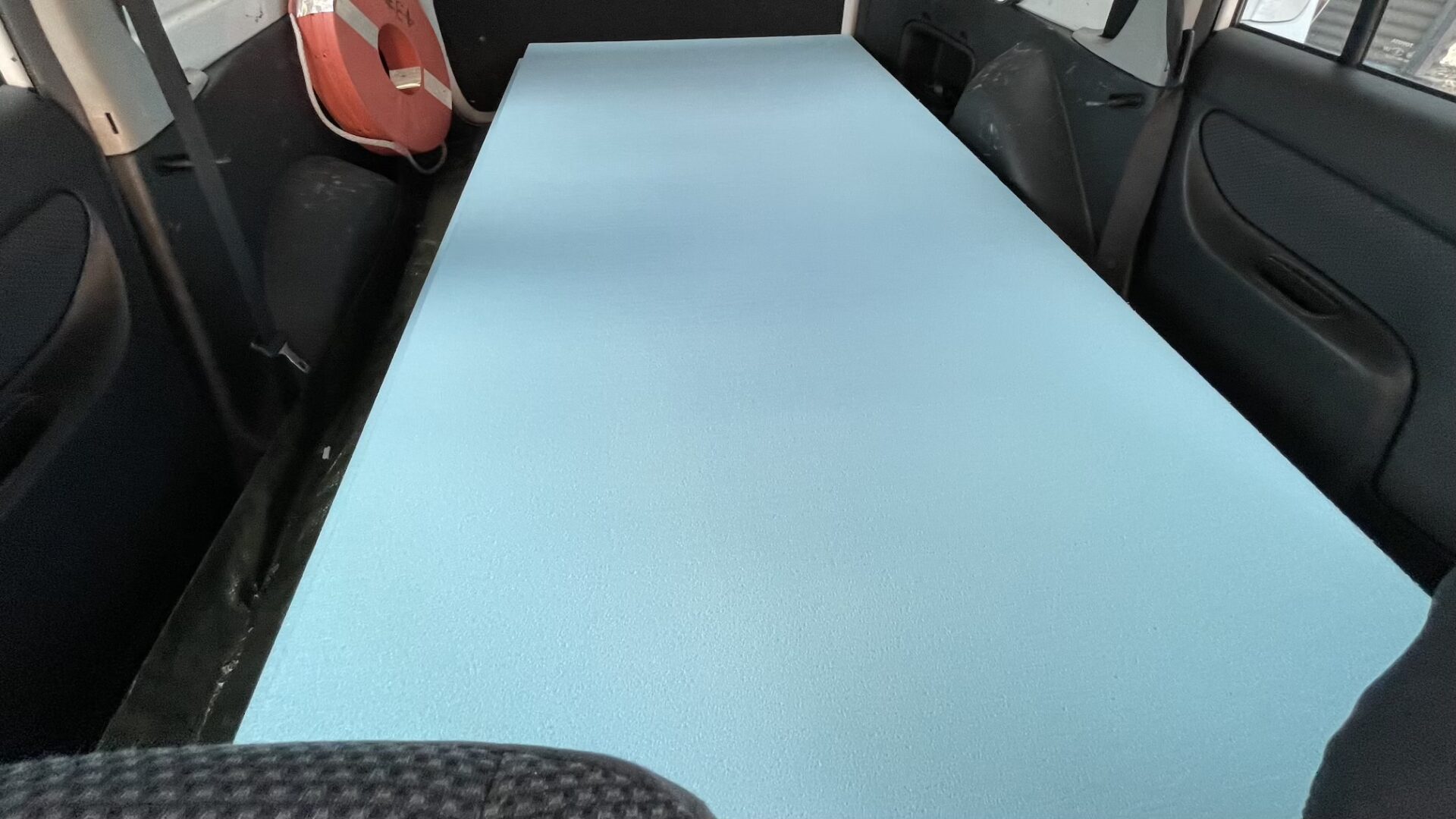 後日談ですが、友人のハイエースに10ftのボート(ボートエースGEB-30)を室内に載せてみました…。超ギリギリ!!