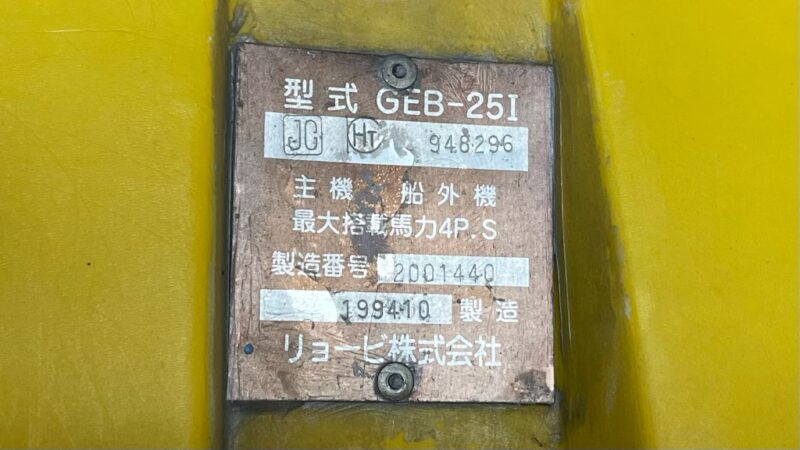 型式がGEBの場合は予備検査付きモデルのため、銘板があるので型式の判断は容易です。裏を返せば銘板がない場合はROB(手漕ぎ仕様)と判断することも出来ます。