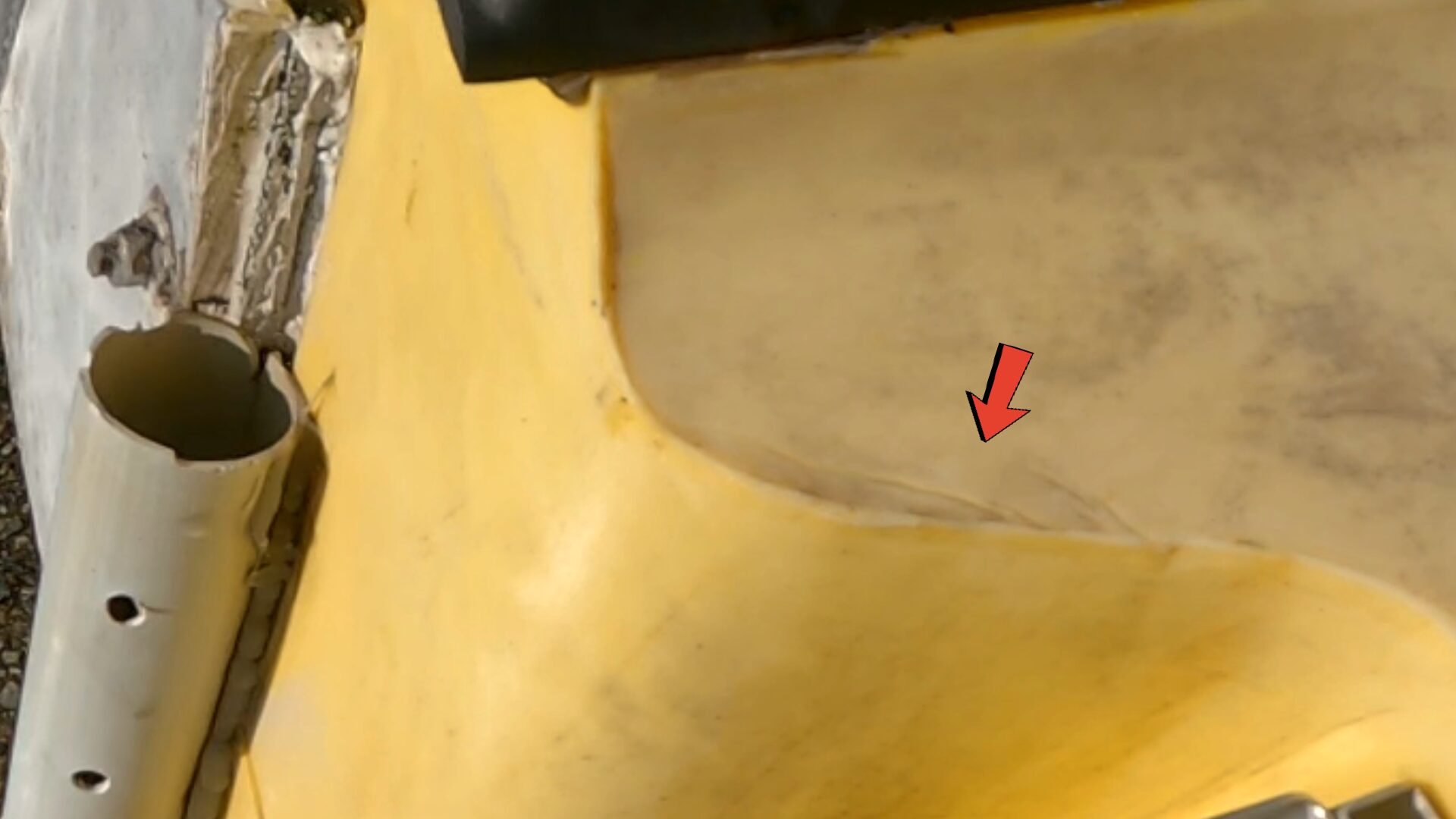 船底の擦り傷も超重要。砂浜から引き上げたり、地面に置いて作業した跡が残りやすい場所です。軽い擦れなら問題ありませんが、深い溝になっている場合は注意が必要です。穴が空いて無いように見えても水圧がかかった時に、割れにつながる可能性もあります。